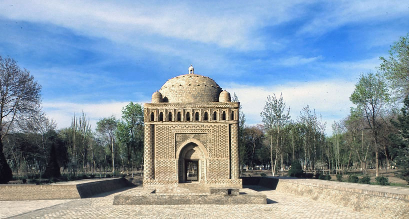 The mausoleum of the Samanids (Qubba al-Saman) set in the agreeable Samanid Park in the north of Bukhara, Uzbekisstan