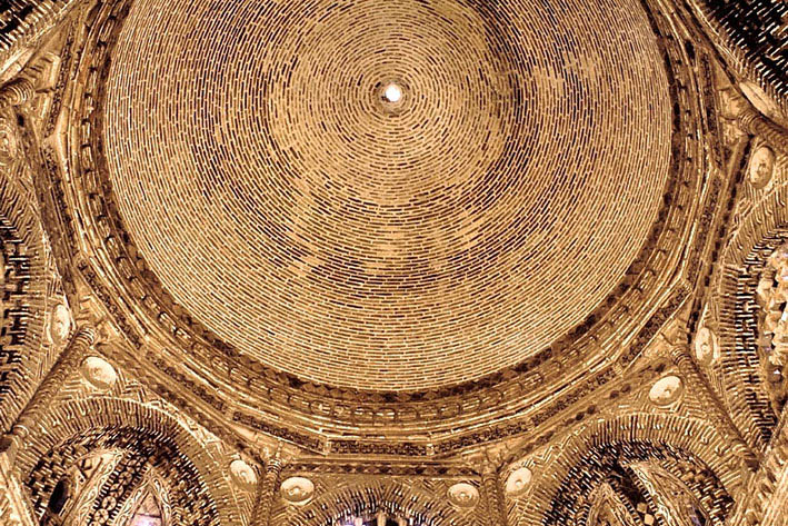 The pure brick dome of the mausoleum of the Samanids (Qubba al-Saman). It is supported by four corneer squinches and four same-sized arches on the walls.