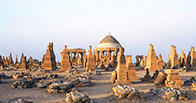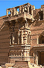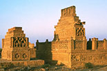 建物以前のイスラーム墓地にも 興味深いものがある。もう15年以上も前のことになるが、パキスタンの古都タッタからカラチへ戻る途中に、長さ数kmにわたる広大な墓地を見つけて寄ってみると、彫刻された砂岩を積み重ねた墓群が夕陽に照らされて赤々と輝き、それがどこまでも延々と続く超現実的な眺めに、深い感動を覚えたことがある。それがチョーカンディの 貴族の墓地であった。