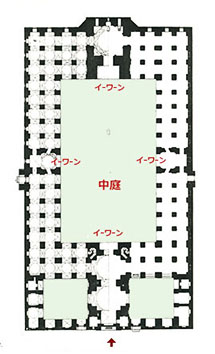 正反対の縦長をしていて、中央アジアのブハラの大モスクの影響下にあると言える。