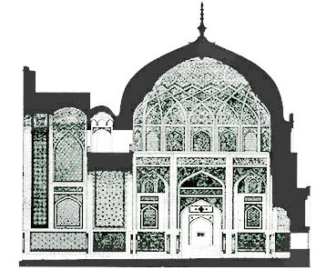 (タッタのモスクの 下(東)の 小中庭を従えるエントランス部は、後の増築)
