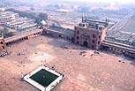 城の次に建設すべきは金曜モスク(ジャーミ・マスジド)で、彼はラホール門の斜め前方に インド最大のモスクを構想する。 ムガル朝の四大モスクは建設順に ファテプル・シークリー、アーグラ、デリー、ラホールの各金曜モスクで、いずれも中庭まで用いれば 一度に数万人のムスリムが集団礼拝をすることができる大規模なものである。ムガル朝のモスクに特有のスタイルは、一作ごとに鮮明になっていった。