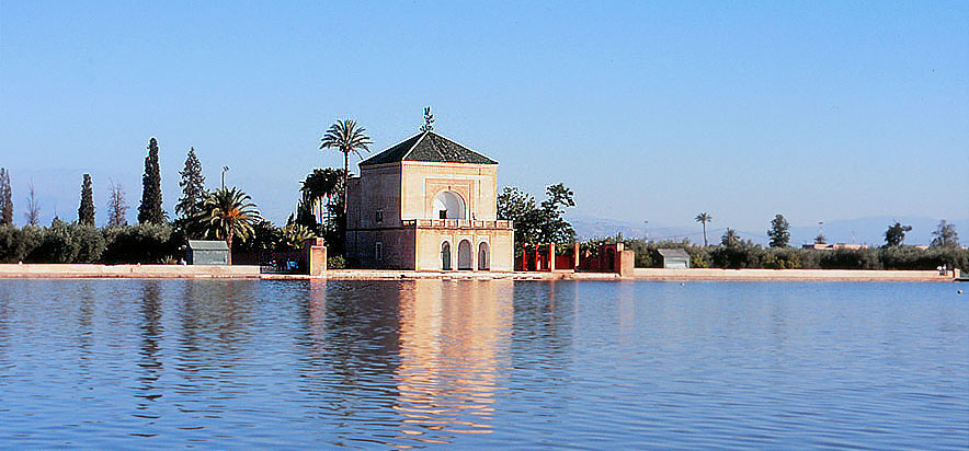 メナーラの、貯水池のある 広大な庭園の パビリオン(園亭) 1866年 、マラケシュ