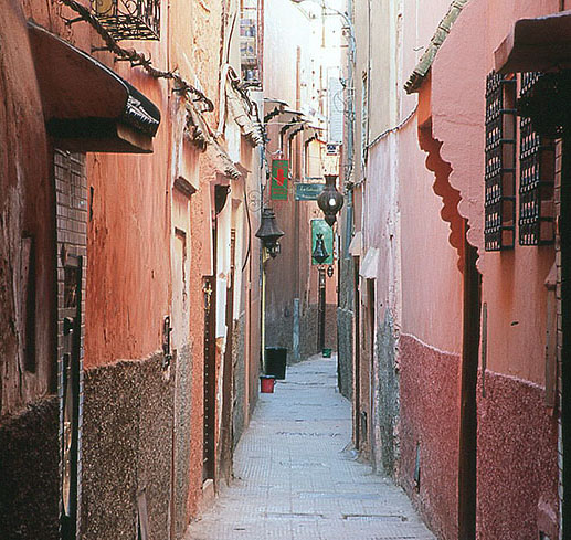 マラケシュのメディナ(旧市街)の通り