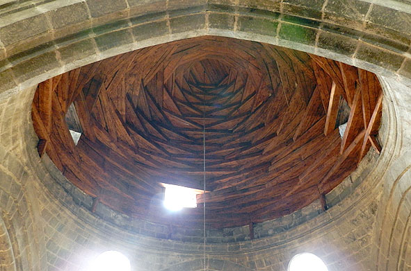 ミフラーブ前の区画に架かるメイン・ドームが、珍しく 木造のラテルネンデッケで造られている。