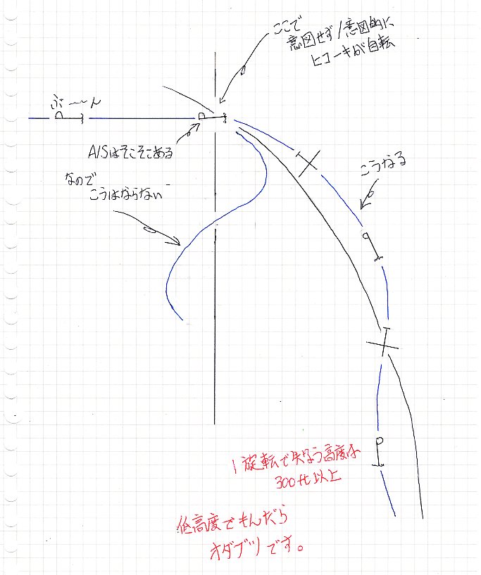 のまんなかあたりの速度でヒコーキをスピンさせるのがスナップロール。