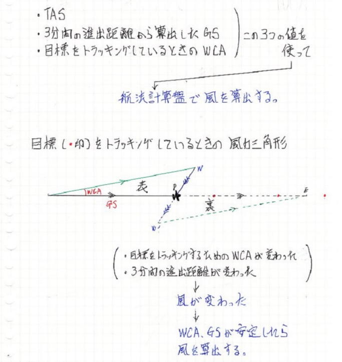 | 「風の算出が正しくできること」 発動から3分後には概略の風、6分後には正確な風が航法計算盤のベクトル計算面に印され る。風が変わればそのつど新しい風が印される。 風の算出、できてるよね。 |