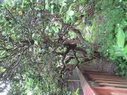 | ツバキ 樹径:20p 樹高:6m 樹齢190年 江戸時代末期に松前藩士笠島紋十郎の家系の方が植えたものと伝えられ、北海道記念保護樹木に指定されている。 5上旬 | |