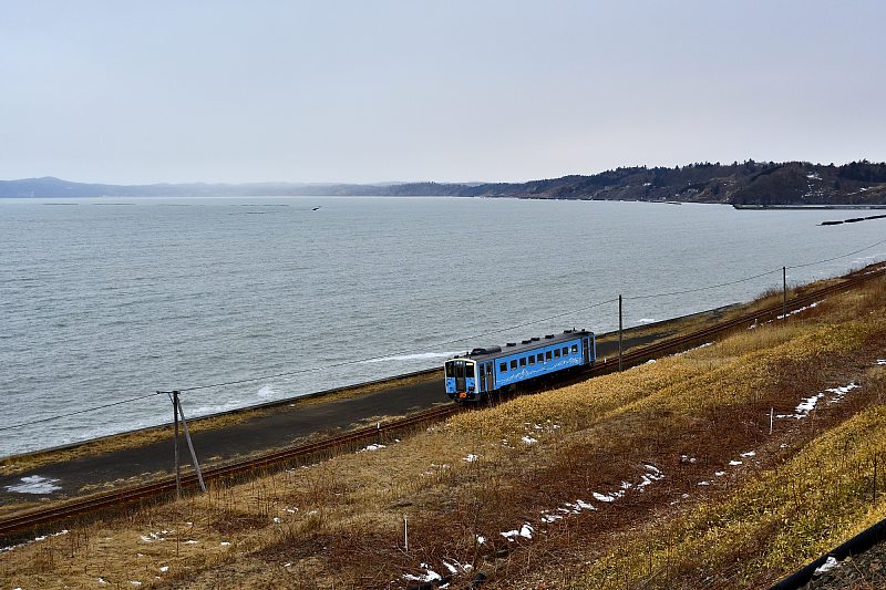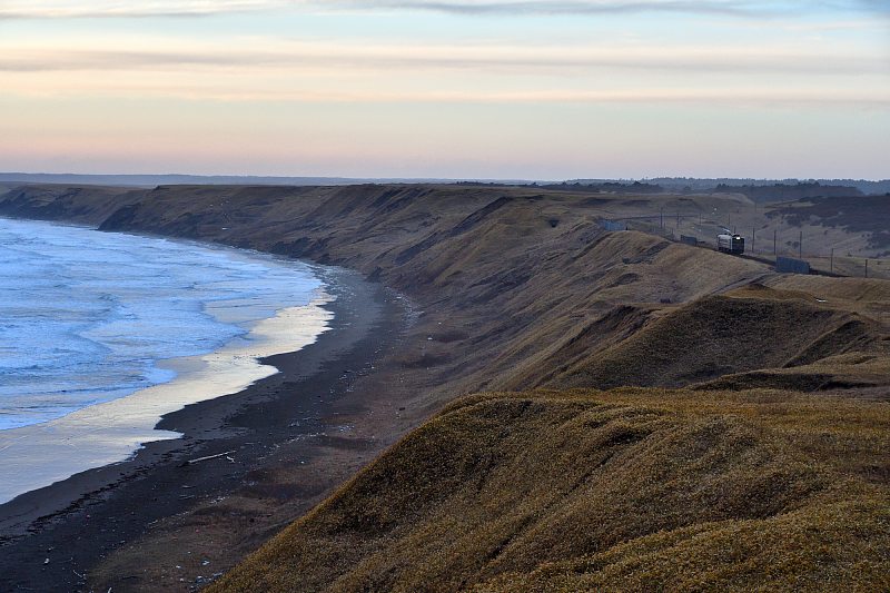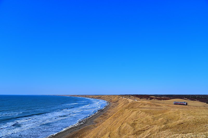午前中は釧網本線で撮影。150kmほど移動して落石へ。着いたときには日が射していたがあっという間に雲が流れてきた。 |
