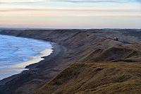 落石岬側から海越しに撮影。さっきまで青空だったのに、1時間のあいだにこんなに暗くなってしまった。この日の天気予報は午後から雪だったのだが予報通り。 |
