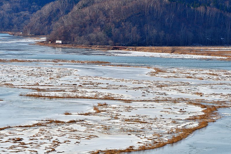 厚岸に泊まった翌日、水鳥観察館の裏山に登った。地面が凍っていて靴底に付けた滑り止めが有効だった。 |