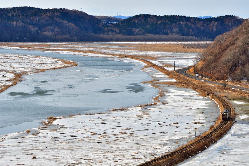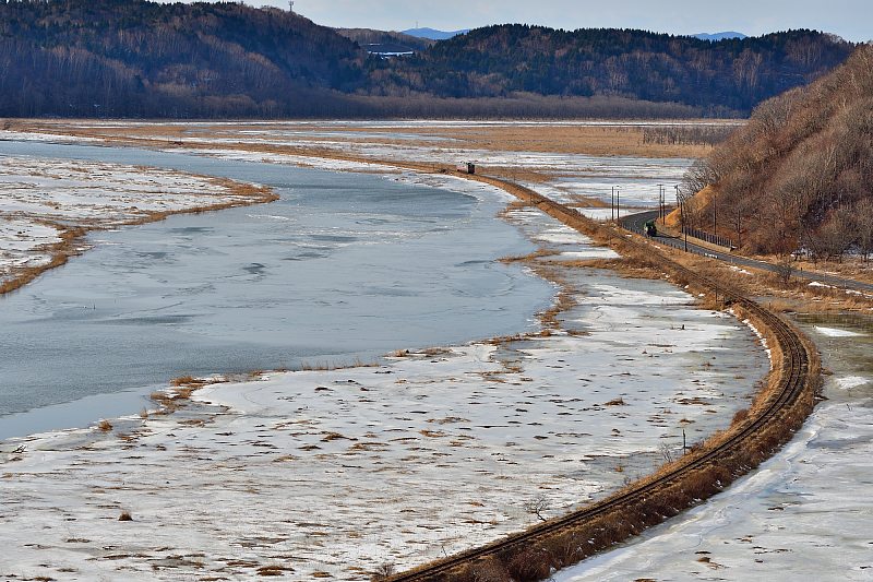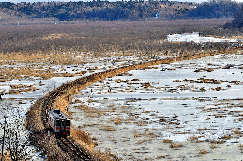 落石での撮影を終え、釧路へ向かう。時刻表を見ると途中、姉別あたりで撮れそう。と、いうわけで姉別駅。ホームからでも原野みたいに撮れる。 |