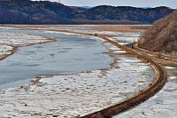 凍った川で釣りをしている人がいた。 |