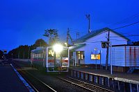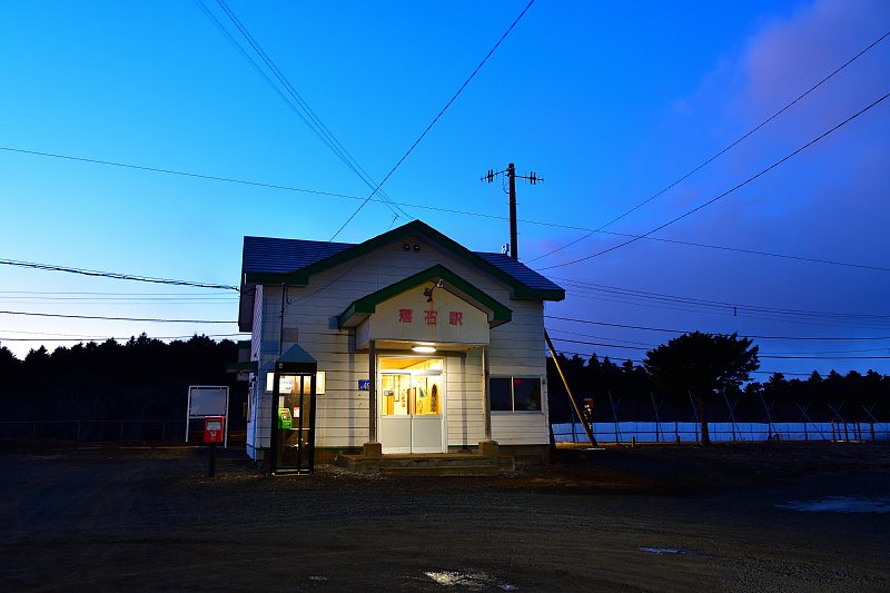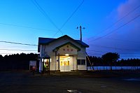 夕暮れの落石駅。最東端の木造駅舎。 |