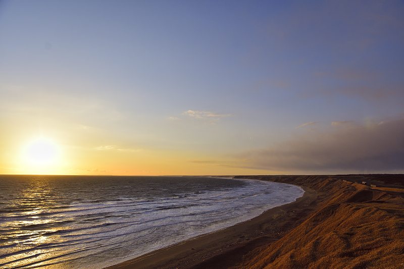 広角では夕日を入れて撮ってみた。やっと夕日を撮ることができた。 |