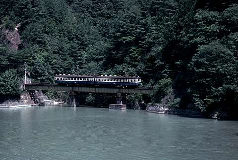 2両編成の納まりがよい。このときは水が濁っていた。