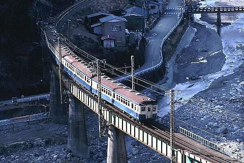 水窪川を渡り駅に進入。杉の植林の斜面から。