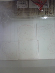 メモ用紙いっぱいに書いたイチゴを 冷凍庫で冷やしています(10/25) |