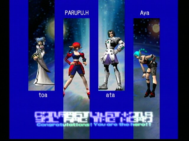 03/22-2 ↑のエンド ふと思ったのですが・・ラグオルって現実社会に比べて 女性比率かなり高いよなぁ・・このHPでも圧倒的に多いな・・女キャラ |