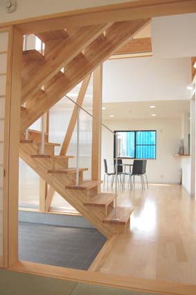 右側が三角のモデル住宅、2棟でV型のウイング屋根を構成