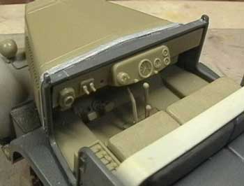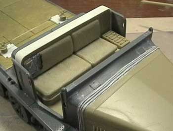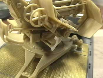 | 最初はフラックザウリアをそのまま組もうと思ったんですけど、 ノーマルタイプに乗せた方がかっこいいので兵員輸送用を購入! しかし四連高射砲タイプを改造した方が早い事に気づき後ろ半分だけ四連の物を改造(T_T) 早く気付って?・・・思い起こせばその時は、四連、絶版だったんだよね。 デッキ部分は四連の台座を取り除き、プラ板で塞いだ後[ACCURATE ARMOUR]の 滑り止めパターンの真鍮版を貼りました。 |