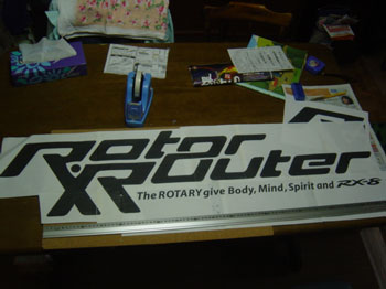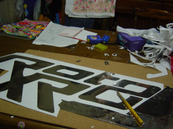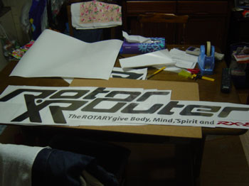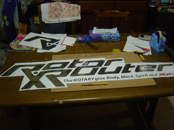 アドビ・イラストレーターで好みのサイズ に拡大したものをプリントアウトし、 セロハンテープで張り合わせます。 お手持ちのステッカーを拡大コピーした ものでも出来ます。 |