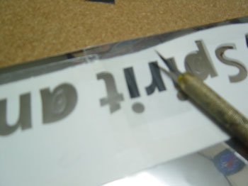 全ての文字を切り終えたら 余白部分をはがしていきます。 少しずつ丁寧jにはがしましょう。 |