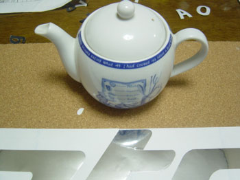ほらほら失敗! あせるとダメです。 「 t 」の上の方が切れてしまいました。 万事休す(笑)。 キュウスが無くてティーポット。 |