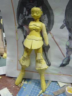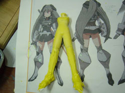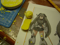 2004.3/12 設定がをいただいた当日深夜 イラストを縮小してほぼGFFサイズに。 とりあえずポリパテを練ってみる。 |