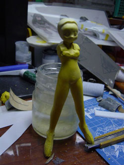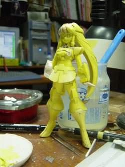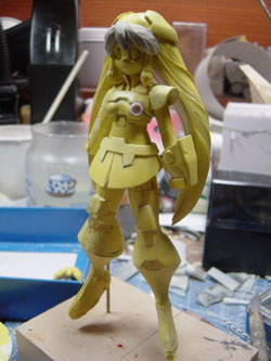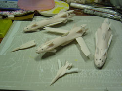 VF-0の武器スクラッチ。 フィギュア製作の合間にメカ物のスクラッチ。 でも河森さんのデザインはフィギュア製作に 近いものがあるかも・・・勉強になるな〜。 1週間でここまで。 複製後、組上げてくれたのは佐治君 塗装仕上げはガトー君です。 |