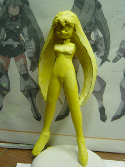 4/3 イラストをノギスで測りながら作ったのに なぜか頭がでかい。 とりあえず全体的に形だしをしないと バランスがとれなそう。 難しいね。 |