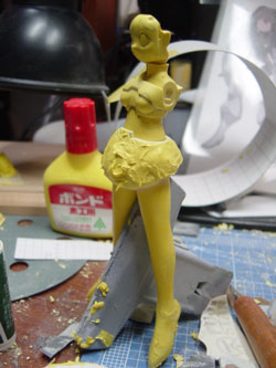 原作者:吉崎さんにチェックしていただくために 大急ぎで半身を形出しして組上げる。 編集高木さんに預けてその間にやることが・・・ |