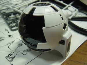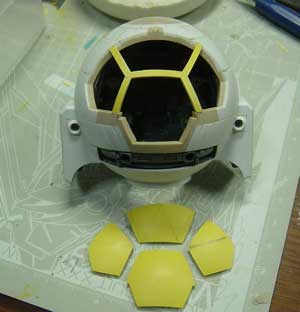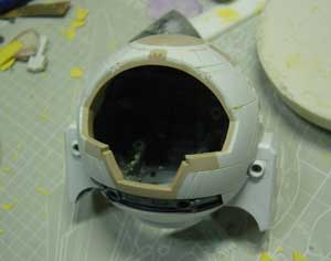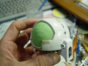 キャノピーのアウトラインが決まった所で中に油粘土を詰めます。 ココにポリパテを盛って中の窓枠を作るんですね。 |