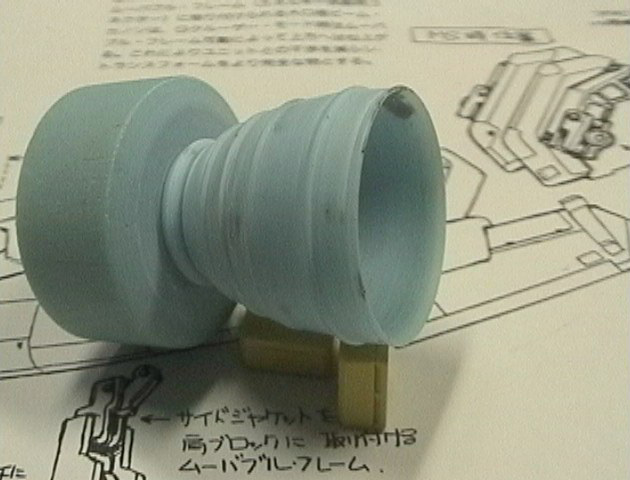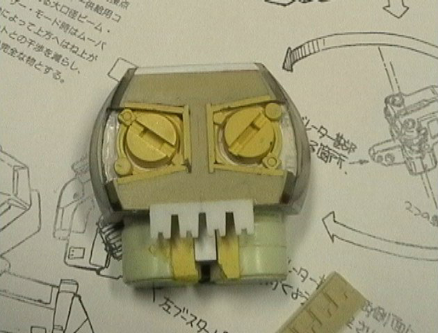 このあたりの細かいパーツから作り始めました。 丸形のムーバルフレーム装着用ハードポイントは、 ムーバルフレーム固定用のツメまでモールドしています。 見えます? |