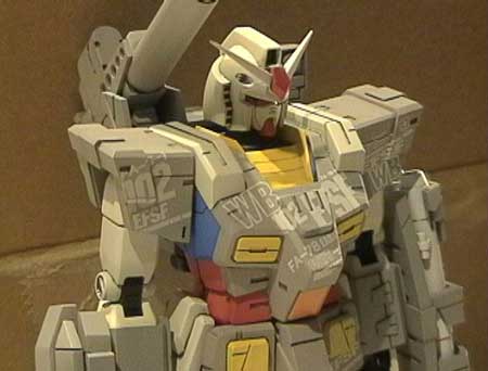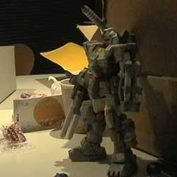| 撮影直前のFA なんとスタジオで初めてアーマーを装着したのだ。 それだけBクラブのキットの出来がよいということですね。 でもこのBクラブのキットが手元に届いたのが撮影の1週間前!!! カトキさんのデカールデザインが届いたのが4・5日前ぐらいだったかな。 背面の指定に至っては、撮影前日だった。!!! デカールを作ってくれたガトー君どうもありガトー。 キットも組んでもらっちゃったし、世話になりっぱなし。 ■上腕はアーマーを着せると貧弱さが際だってしまうので、 時間がないのに改造しています。 時間短縮のため、パテ類は使っていません。 瞬間接着剤+ポリパテの削りかすで出来てます。 |
