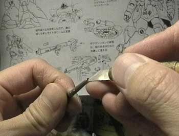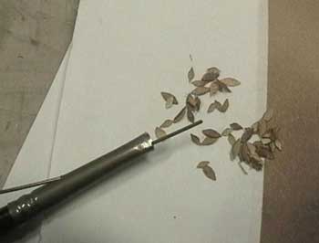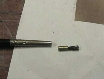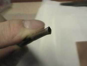 | 真鍮パイプの時と同じく内側をアートナイフで削ります。 | |