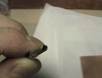 | 筆の場合、中にどんどん貯まってしまうので 横にピンバイスで穴を開けて、真鍮線で押し出します。 |