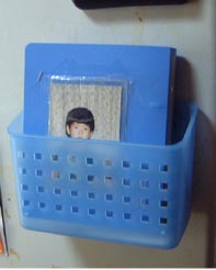 実物提示から写真へ いろいろ取り組んでゆく中で、絵や 記号は解らないけれど、写真は何 とか解るようでしたので、写真に変 えました。 ![]() 食器棚に貼った写真 ![]() 冷蔵庫の食べ物ファイル ![]() お出かけ先を入れた写真ファイル ![]() ×と○とを伝えるために 持ち歩きました。 表が○で裏が× ![]() 親用のカード帳 ![]() 学校用のカード帳 毎日学校に持って行かせました。 ![]() 悠くんのランドセル お友達のものと間違えないように ケロッピーを描いちゃいました(^^ゞ |