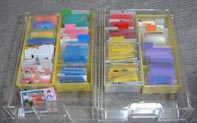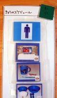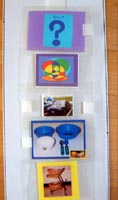 マグネットボードに写真をラミメートして貼っています。 ←右 悠くんが知りたがっていること「今日は、学校なし、療育なし。」 ↑ 左 今からすること 「車でマクドナルドに行って、それからお買い物をします。」 悠くんは、要求したくなると、ボードの下のボックスからカードを選び出して、 ボードに貼ります。 カードが増えてくると、探すのが大変そうななので、はがきファイルに一枚ずつ 入れてみましたが・・・怒って全部出してしまいました(^^ゞ 結局、ぐちゃぐちゃに入れているボックスから、探し出します。 |