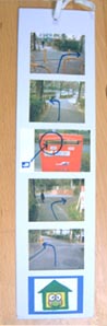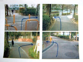 | 行く道を写真にとって示す方法は、失敗しました(^^ゞ 悠くん、コミュニケーションやスケジュールに使っている写真を理解していますが、今まで道順を示したこ とがありません。悠くんにとって場所の写真は、「その場所で何かする」ということを表しているようです。 途中過程を示しているということに気が付きません・・・というより、途中過程の存在に気づいていないの でしょう・・・とっても混乱してしまいました。 新しいことをするときには、やっぱり「具体物提示から丁寧に」ということをしないといけないようです。 道順の具体物提示・・・・(^^ゞ 道にガムテープの矢印でも貼りましょうか・・・そこからスタートして、その矢印の付いた道を写真に撮ると いう事で、道中を示しているということを教えられるかもしれません。 |