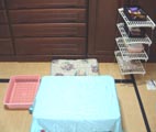 | 悠くんは・・・ | 『お勉強コーナー』を作れればいいのですが、我が家は狭いので、お勉強コーナーを作れませんでした。本来なら、場所と活動を1対1にするほうが、混乱しないのですが・・・(^^ゞ そこで、居間の座卓を使う事にしましたが・・・普段は遊びで使っているこの座卓、さて、どう構造化しようか、どうやって「今から勉強する」を見てわかるようにしようかで悩みました。 ・・・で、活動によってクロスを分けることにしました。 クロスが掛けてなかったら普段の遊びのテーブル。 ブルーのクロスを掛けると、勉強用ということにしました。 本当は、悠くん用の学習机を用意してあげたら良かったんですけどね・・・(^^ゞ |
