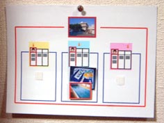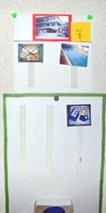 今日は学校に何を持って行くのかを枠の中に示します。 普段は『校内服』『水筒』『給食用エプロン』『連絡帳』『タオル』など持って いくものの写真を貼っています。 |