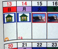 朝からおばあちゃんのスケジュールの『家×(家に来ない)』を『家(家に来る)』に 変えて欲しいとの要求が出ています。 かなり頑固にがんばって要求してきます。 ついに実力行使・・・おばあちゃんのスケジュールを『家』に貼りかえてしまいました。 本当は今日おばあちゃんが来る予定でしたが、サリーはそのことをすっかり忘れ ていました・・・なのになぜ悠くんには解ったのでしょうか・・・・ それとも、たまたま、強く要求しただけでしょうか・・・ 療育に出かける前に、カレンダーで14日の「外食」の文字を示してを確認してきま した。 「うん外食ね」と言葉をかけるとにっこり(#^.^#) やっぱり文字だけでもいいようです。 |