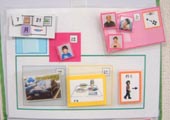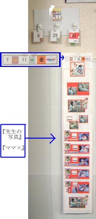 今日は、懇談会と修学旅行の説明会がありましたので少し早めに教室に行きました。 ちょうど朝の会、悠くんの当番のようです。悠くんと先生が前に出て、先生が当番のし ゃべるセリフを全部言っていました。 ・・・確かに、悠くんはしゃべりませんが、先生がしゃべる横に立っていることに意味が あるのでしょうか・・・・ それから、当番がリードして歌に合わせて手遊び。 悠くんは、前に立って、横にいる先生をチラチラ身ながら身ぶりだけを真似ています。 歌に合わせた身ぶりって・・・歌も歌えないし、歌の意味が解らない状態で身ぶりだけ 真似をしていて楽しいのでしょうか・・・ ここまでで当番は座り、先生が出席を取ります。 平かなで名前を書いた白い紙が黒板に貼ってあり、それを指さしながら一人ずつ名前 を呼んでいきます。文字のわからない悠くんには、黒板の白い紙は意味のないことで すね・・・ それから、今日の日付の確認。 黒板に 「□がつ□にち□ようび」と書いてあり、先生がみんなに□に何を入れるか聞 いています。今日のお天気だけは、なぜか絵でした。 言葉と文字だけの授業です。 悠くんには何がやり取りされているかすら解らないでしょう・・・・それでも、前を向いて 座っていないといけない・・・悠くん、我慢強くなりました(^^ゞ 幼稚園の授業のようですが、幼稚園児は4〜5歳です。 悠くんは、2歳程度ですから、言葉も文字も解らない悠くんにはとてもついていける授業 ではありません。 悠くんは、体験で座っているわけではなく、そのクラスの一員のはずなのですが・・・ 悠くんにわかる授業を期待するのは養護学校でも無理なのでしょうか・・・・ 修学旅行の説明会では、順を追ってビデオを見せていただき、模造紙3枚にわたって 写真入りの大きなスケジュールが用意されていました。 子どもたちにいつも見せているということでしたので、解りやすく作ってくださっていまし た。 ・・・が、それが自分が9月に行く修学旅行のことだということが悠くんにわかるように示 されてはいませんでした。 悠くんはそのビデオやスケジュールをどう思ってみているのでしょうか・・・ 私たちが旅行の雑誌を見ているように、ふーーんこんなところがあるのかと見ているの でしょうか・・・自分が9月に行くということには気がついていないでしょう・・・ それが9月に自分が行く旅行のことだということを悠くんに伝えないといけませんので、 それらの画像データをくださいとお願いしてきました。 「9月に悠くんが行く旅行のことだ」ということを伝えるのは、すごく大切なことです。 そういったことをカレンダーを使って伝えることで、カレンダーの意味、先の見通しを示し てあるということ、その目的の日に向かって、一日ずつ進んでいるということを理解して いきます。 今この瞬間だけの理解では見通しが持てるようにはなりません。 1つの活動と大きな時間の流れとの関係の理解は絶対に必要です。 時間は流れているということ、いくつもの活動がつながって大きな時間の流れになって いることの理解は絶対に必要です。それを視覚的に解りやすくされたものがカレンダー です。 画像データをいただいたら、すぐにカレンダーと連動させた形でのスケジュール提示を したいと思います。 **************************** 今日悠くんは、学校で、マクドナルドの確認ばかりしていました。 学校からの帰りにも、確認をしていました。 帰宅してすぐに歯医者に行くために歯磨きをしました・・・ら、なんと・・おもらしをしてしま いました。 ものすごく怖いようです。 とりあえずオムツに履き替えて出発しました。 駐車場で車を降りると、自分からさっさと建物に入って行って、さっさと障害児歯科の待 合室の方に行ってしまいました(^^ゞ 先生が呼びに来ると、さっと立って先生と一緒に診察室に入り、診察イスの方に行きま したが、診察イスの前に来ると、突然拒否し始めました。 納得してきたはずだけれども、目の前になるとやっぱり怖くてどうしようもないという感じ です。 先生ではなくサリーがしろと言っています(^^ゞ 「先生」の写真を貼ったスケジュールで、先生がしますということを伝えましたが、拒否 して「サリー」の写真を示しはじめましたので、交渉することにしました。 ![]() ↑ 先生の写真はマジックテープで貼ってありますので、 はずして「サリー」の写真と貼りかえる事が出来ます。 青い台の部分とカードの部分ともマジックテープで貼 ってあるだけですので、台の部分と離すことが出来ます 最終的に、最初の歯磨きの所だけが先生で、その他はサリーということで交渉が成立 しました。 ・・・といっても、悠くんの気持ちとしては、かなり頑張って譲ってくれた結果です。 耳をふさぎながら、「あーうー」と声をあげながら、一通り済ませました。 治療が済んだらすぐに待合のソファーに行ってしまい、「診察室にはもう居たくない。
