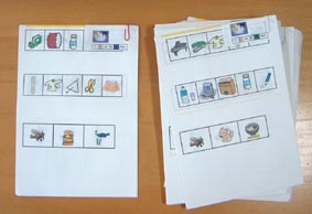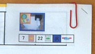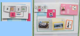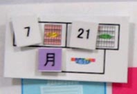 19日のEスイミングを構文にして貼っておいてほしいという要求が出ましたので、構文 シートにして貼りました。 その時に、「○月○日○曜日」のカードに、サリーが悠くんの目の前でカレンダーのそ の部分を示しながら、1つずつ「7月、これね」というように日にちカードに貼っていってい ました。悠くんは、サリーの指さすところを1つずつ見ながら、サリーの顔をその都度見 て「うんうん」とうなずきます。 そろそろ悠くんにやってもらおうと思い、カレンダーのその部分を示すだけをして、複数 の数字カードの中から選んでもらいました・・・ら、全く出来ません。 サリーの指さしているところと、日付カードとの関係が全く解っていませんでした。 あれだけ毎回毎回悠くんに見せて伝えていたつもりなのですが、悠くんには、その意味 が伝わっていませんでしたので、カレンダー上の月や日にちや曜日を表す数字や記号 は、悠くんにとっては、意味のないしみ程度のものだったようです。 |