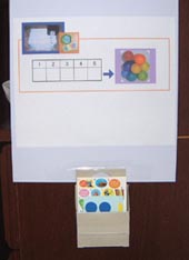 悠くん、構文シートの日付を、カレンダーを見ながら貼ることが少し出来るようになりまし た。 今日、外食の予定でしたが、菜ちゃんが地域のお祭りにお友達と出かけています。 花火などもあり、終了は8時半ですので、今日は、外食を止めました。 明後日の21日に変更をすることを悠くんに了解してもらい、構文シートの日付も変更し ました。 カレンダーでやり取りをして、構文シートの日付のところは、カレンダーを見ながら1つず つ悠くんに貼ってもらいました。 ![]() 悠くんが、日付を抜き出すことがなぜ難しいのかがやっと解りました。 形が全く違うところ(場所)から、違うところにマッチングさせるのは難しいということみた いです。 悠くんには数字が解りませんので、周囲の線なども含めたものが見えていて、その中 から数字だけが同じということに注目するということがわからなかったようです。 確かに、枠などの黒い線と、黒い線で構成された数字との区別はつかないですよね。 1から0の記号の組み合わせで1つの概念を表す塊になっているということが解らない のですよね。 下にアンダーバーがついていたり、横に線があったりする中から、私たちは1〜0の組 み合わせの数字だけを1つの情報として抜き出すことが出来ます。 「私は、同じ数字を貼ってね」と思っているのですが・・・悠くんにはそれが伝わらなかっ たということですね・・・当たり前か、説明するすべがありませんから・・・ 悠くん、どこまで同じだったらいいのかといううことが解らなかったようです(^^ゞ そんなこと、解りきってるはずなのに、気がつきませんでした(^^ゞ 既成概念にとらわれすぎているのは、私ですね・・・ 見えない領域枠・・・決まりごととして決まっていることですが、悠くんにはそれが解らな いということを再認識しました。 やっと、枠などは無視して数字だけのマッチングだという事に気がついたようです。 それから、次に、カレンダーで赤字になっている数字と、同じ形だけど色がちがうけど同 じ形(黒い数字)とが、同じものということに迷ったようです。 さて、菜ちゃんが行ったそのお祭りですが、舞洲から帰ってきた悠くんをお祭りに誘うと 拒否しました。 ところが、暗くなって、花火の音が聞こえ始めると、外が気になるのか窓の外をのぞき ます。 「お祭りに行く?」と聞くと、行くということでしたので、もう最後の花火だけでしたが行き ました。 ************************* 夏休みに向けて、悠くん用の課題を作っています。 悠くんの遊びの興味が広がらないことへの取り組みとして、今までとは違った方向から 見る必要がありそうです。 悠くんは、それぞれのおもちゃを単独のパーツとして触ったりかじったりしているだけで す。 なぜか・・・ 遊びとしての完成までのプロセスを丁寧に視覚化して支援する必要があったのかも・・・ なんて思いはじめました(^^ゞ 放っておいてもはじめのステップから次には行きません。 次のステップにつながるための支援。 それがなんのために次のステップにつながるかということ、そのつながったステップの 先には何があるのかということの支援が必要なのかも・・・・なんてよく解らないことを考 え始めました。 実際に、私にもよく解っていませんが、その方向からの支援が抜けているかもしれない と思いついただけです。 やっていってみないとわかりませんね・・・ とりあえず・・・というか、まず必要なことは、モチベーションを持続させるための構造化 ・・・って、モチベーションを持続させるシステムを、見て解るように視覚化するってことで す。 早い話がご褒美シールシステムですね(^^ゞ いままで、回数を重ねてまでもほしいと思うものが用意できませんでした。 悠くんが興味を持っているプールやマクドナルドは、見通しやコミュニケーションのため に使っています。 それ以外で、悠くんがほしいと思うものが全く見つかりませんでした。 ・・・が、そんな事を言ってられませんので、ご褒美システムを使っていこうと思います。 ご褒美にするのは、悠くんがかじり壊すのが大好きな木のおもちゃを使います。 ![]() さて・・・課題は、悠くんに理解してもらいたいところを中心に作りました。 ・領域の理解のために、「決められた領域内を塗りつぶす」 ・グループ理解のために、「関連するもの同士のマッチング」 ・文字の理解につなげるために、「鉛筆を持って線を描く」 この辺りを中心にします。 やっと卓上のプリントのようなものでの課題が出来るかもしれませんので、せっせと作っ ています。 悠くん2歳程度ですから、2歳児の課題ぐらいはそろそろできるかも・・・なんて思ってい たりします・・・甘い?(^^ゞ ・・・とか言っても、実際にやらせてみたら、とても難しすぎで出来るものではないという こともありえます。 やってみて初めて、こんなことが出来ないのか、こんなことが解らないのか・・・ ということが解っ