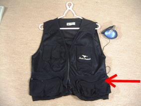 背中にポケットがあり、その中にMDプレイヤーを 入れています。 |