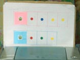 | プレイヤーのボタンを色分けしています。 MDとCDが入りますので、両方入れています。 MDには『ブルー』、CDには『ピンク』の音楽が 入っています。 『ピンク』を聴きたい時には、赤→青→黄→黄の 順にボタンを押します。 『ブルー』を聴きたい時には、赤→緑→黄の順に ボタンを押します。 |