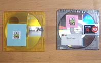 | 『ピンク』『ブルー』のシールを貼った2枚のMDのうち、どちらか好きな方を選んで聴きます。 | ||