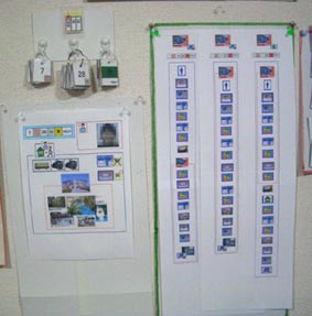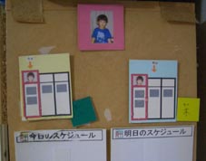 |  悠くん用のスケジュールは、悠くんが自由に確認できるように、悠くんの コミュニケーションブックに入れます。 ↓    | ||